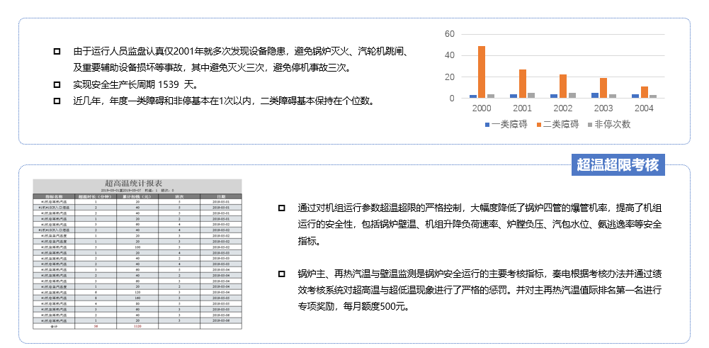 2、 机组供电煤耗有明显降低,与此同时,汽机热耗率明显提高,机组效率及汽机效率、锅炉效率均有较大幅度提升,超温次数也较往年同期大大减少。