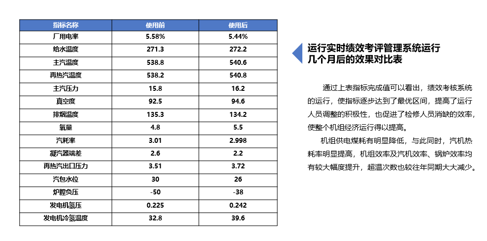 1、绩效考核系统的运行,使指标逐步达到了最优区间,提高了运行人员调整的积极性,也促进了检修人员消缺的效率,使整个机组经济运行得以提高。